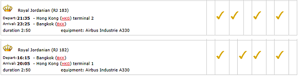 後來又比我搵到間''皇家約旦航空’',同樣係用A330客機執飛。雖然座椅去唔到180度fully flat,不過價錢方面仍然算可以接受。